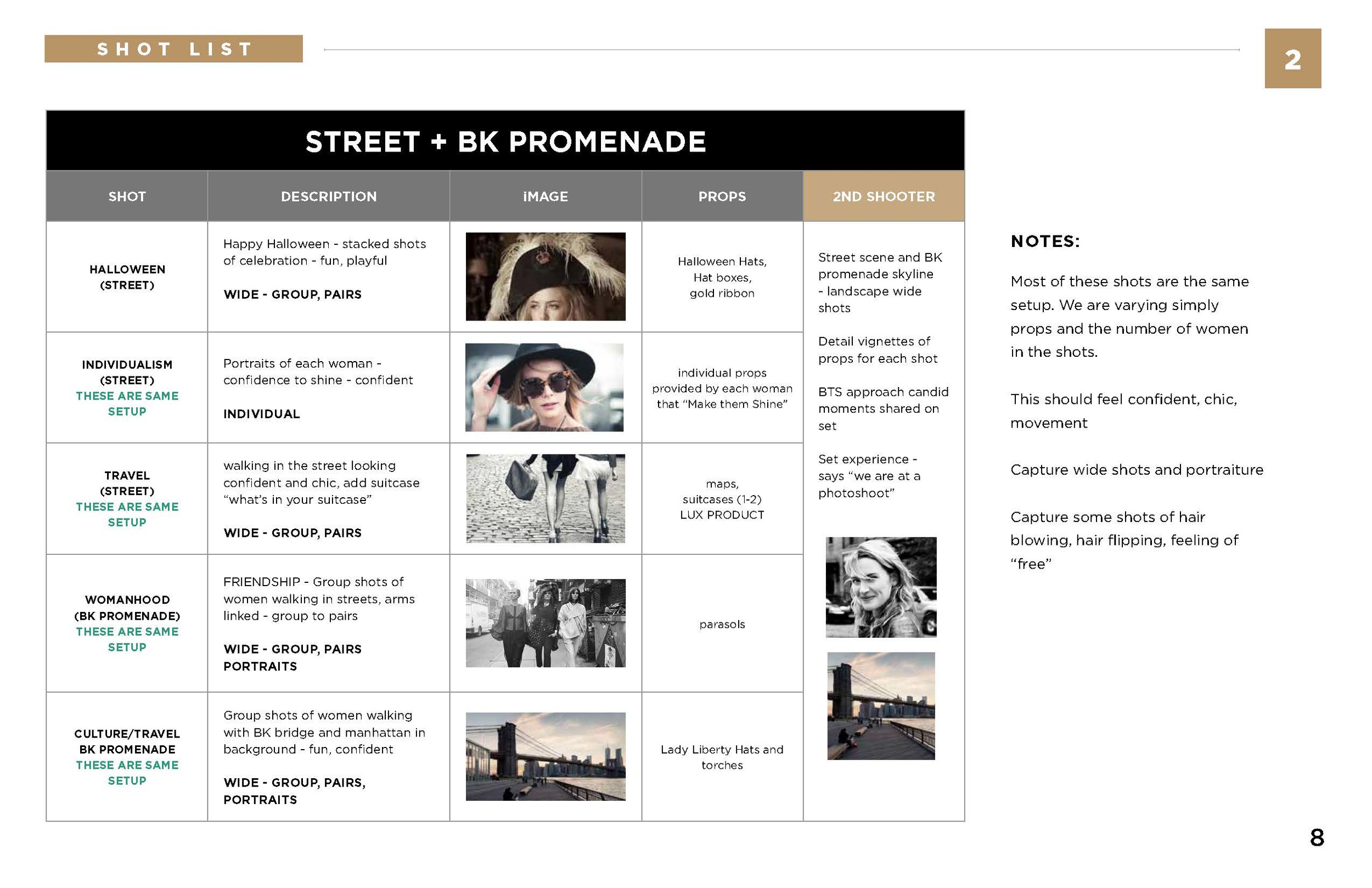 the pre-pro deck represents all of the elements crucial to executing deliberate creative intent. The pre-production process connects those dots with a crew of 5 or a crew of 45, a 5 day shoot or a 5 hour shoot. Most importantly, it is the visual representation of the creative brief. Each pre-pro process is different for every client, and every deck catered to the need of the project, yet fundamentally it serves as a jumping off point for the photographer and crew. It is the foundation for selling in an idea and working out the details, however small, must be addressed during production. The samples below illustrate my 5 years of experience with building the key structural elements to a successful shoot, so that it allows for seamless collaboration and also spontaneity on set.
